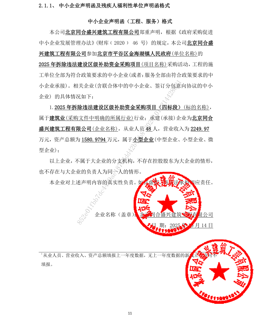 二、项目名称:2025年拆除违法建设区级补助资金采购项目