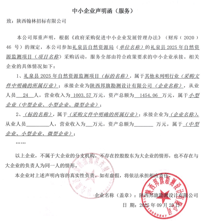 ******资源局礼泉县2025年自然资源监测项目中标(成交)明细.pdf 礼泉招标文件2025.9.02.doc 01中小企业声明函.png 02中小企业声明函.png